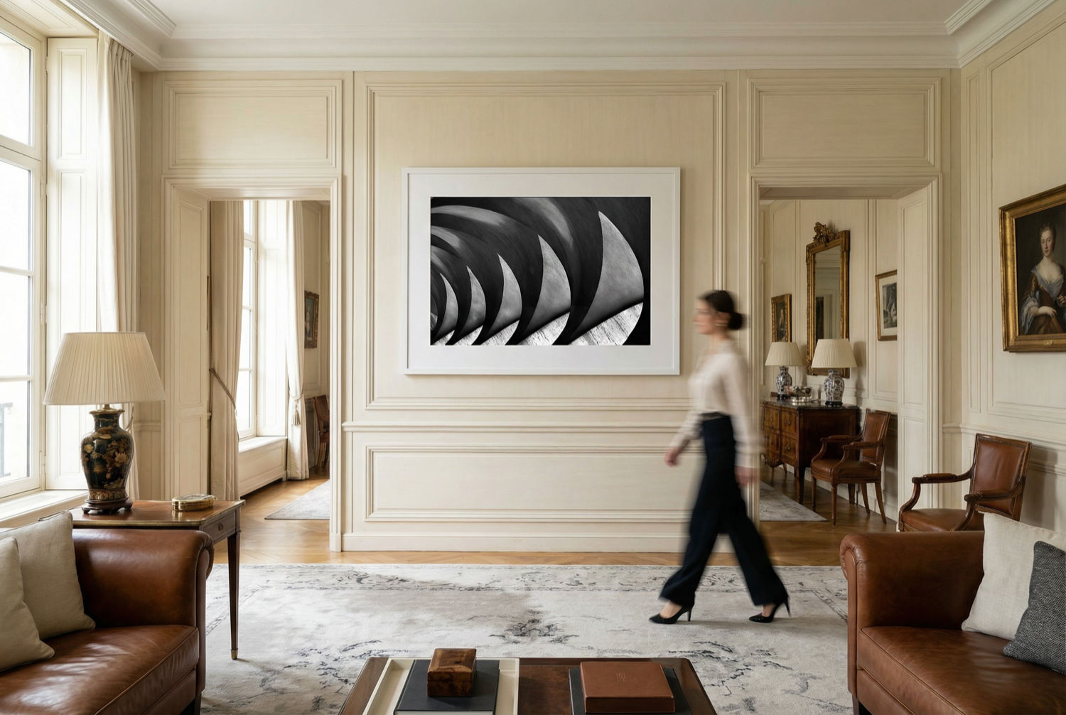 In this collection, sails appear in unexpected places, far from their natural element. Urban spaces, silent landscapes, and unexpected architecture become settings where the white of the sail asserts itself as a graphic and symbolic sign.