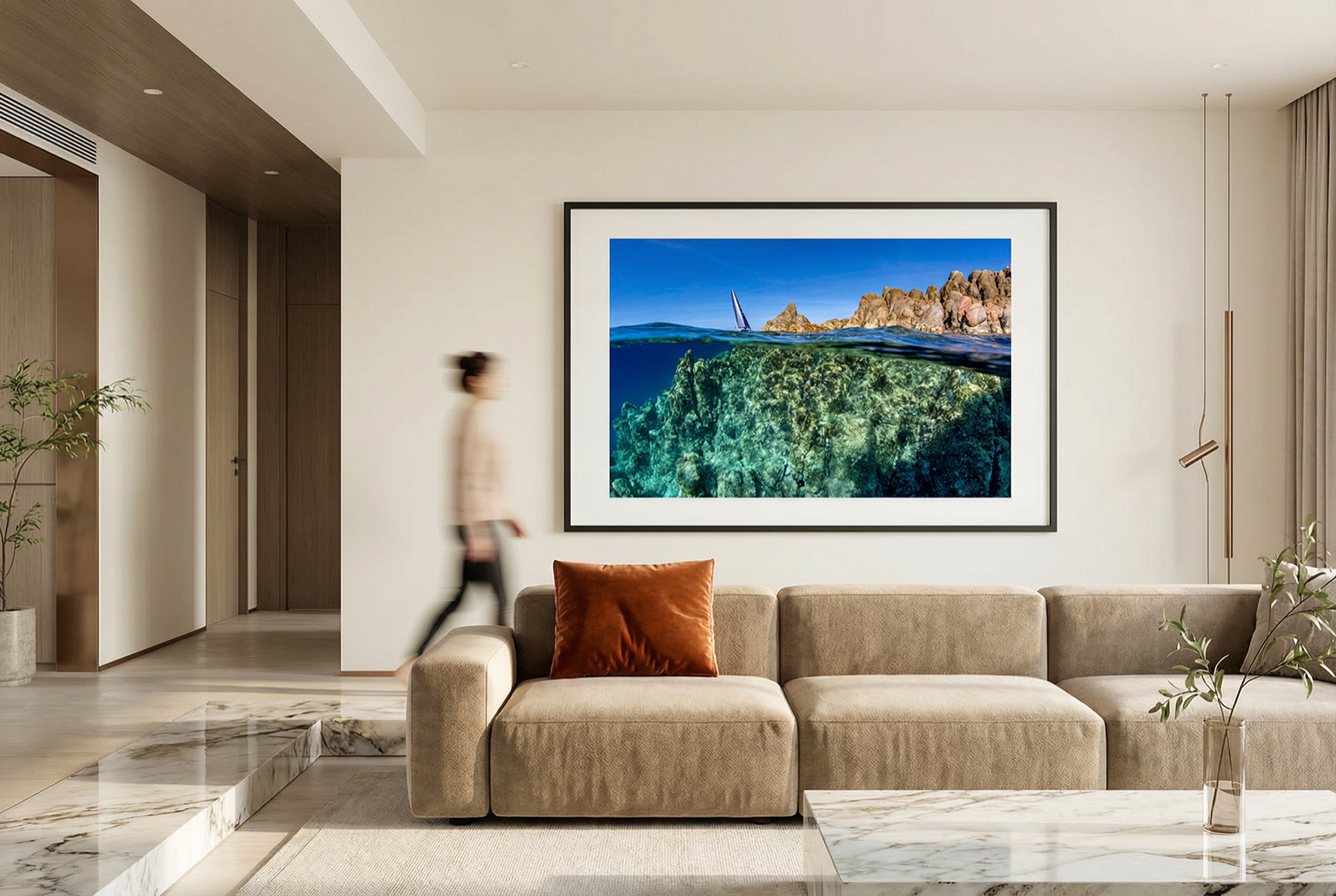 Immerse yourself in a magical atmosphere with this mesmerizing underwater photograph. A work of art that captures the serenity and mystery of the ocean depths, perfect for transforming any space into an oasis of calm and wonder. The blue tones and flowing shapes create a mesmerizing effect that invites the eye to explore every detail. Ideal for those who love nature and the ocean and want to bring a touch of adventure and tranquility into their homes. A stunning addition to bedrooms, living rooms, or workspaces that deserve a touch of aquatic magic.